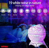 می توانید سرعت و روشنایی افکت نور را با کنترل از راه دور موجود تنظیم کنید. نور و تایمر شب شما می توانید آزادانه زاویه را تنظیم کنید، می توانید به راحتی چرخش افقی 360 درجه و زاویه تابش عمودی 90 درجه را تنظیم کنید و زاویه مورد نظر خود را انتخاب کنید و نور شب پروژکتور را در جهات مختلف انتخاب کنید. می توانید یک تایمر تنظیم کنید تا پروژکتور بعد از 1 یا 2 ساعت خاموش شود. اگر فراموش کردید تایمر را تنظیم کنید و به خواب رفتید نگران نباشید زیرا پروژکتور پس از 4 ساعت به طور خودکار خاموش می شود. 19 نویز سفید این پروژکتور نور شب پر ستاره دارای حداکثر 19 صدای نویز سفید برای انتخاب است. با سفارشی کردن روشنایی نور شب و انتخاب صدای سفید مناسب برای آرام کردن خواب کودک، کودک نوپا، بچه بزرگ یا نوجوان خود، خواب بهتری را در شب تشویق کنید. کنترل صوتی و بلوتوث پس از جفت شدن، جلوه پروژکتور نور کهکشانی مطابق با ریتم موسیقی شما حرکت می کند. شما همچنین می توانید نورها را با صدای خود یا با کف زدن یا با صدا کنترل کنید.
