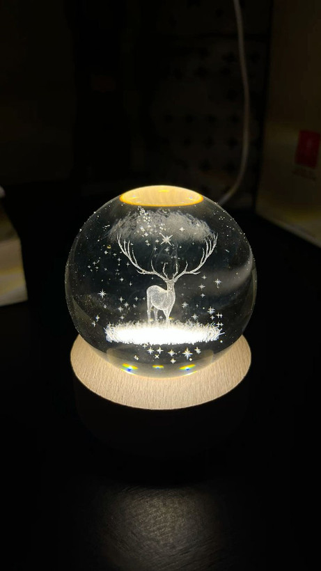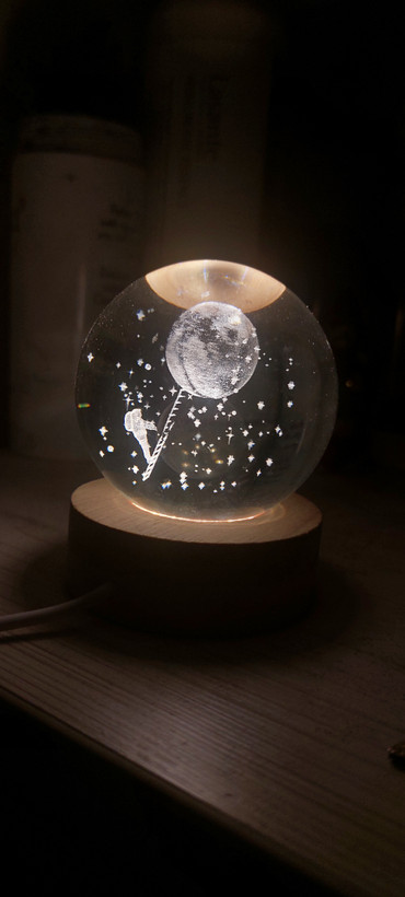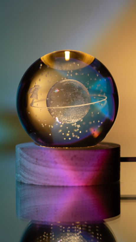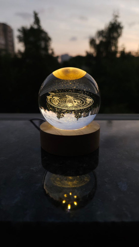 این چراغ خواب کریستالی به صورت سه بعدی و در طرح سیارات منظومه شمسی تولید شده که باعث جذابیت بیشتر اتاق خواب شما می شود. جنس این گوی شیشه ای از کریستال فشرده می باشد و همچنین دارای یک پایه چوبی و کابل برق USB می باشد.این چراغ خواب زیبا در دو رنگ ثابت و متغیر قابل دسترس است.