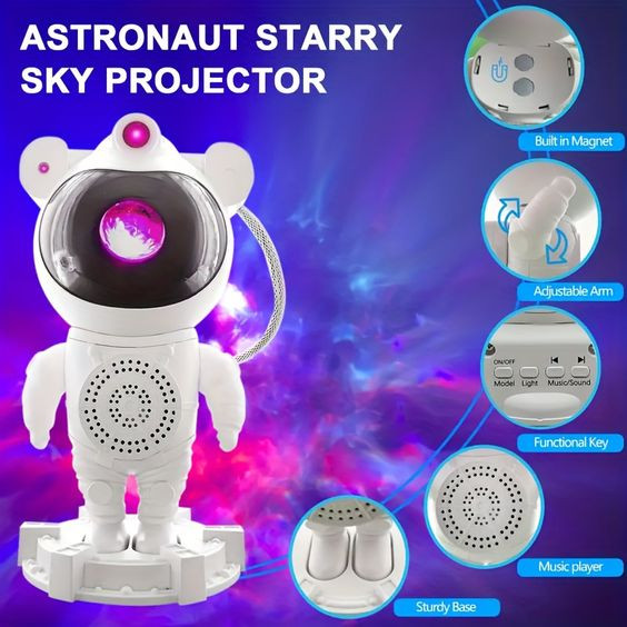 چراغ خواب کهکشان ساز فضانورد مدل اسپیکر دار(افکت صدای لالایی)+جاکلیدی بازی